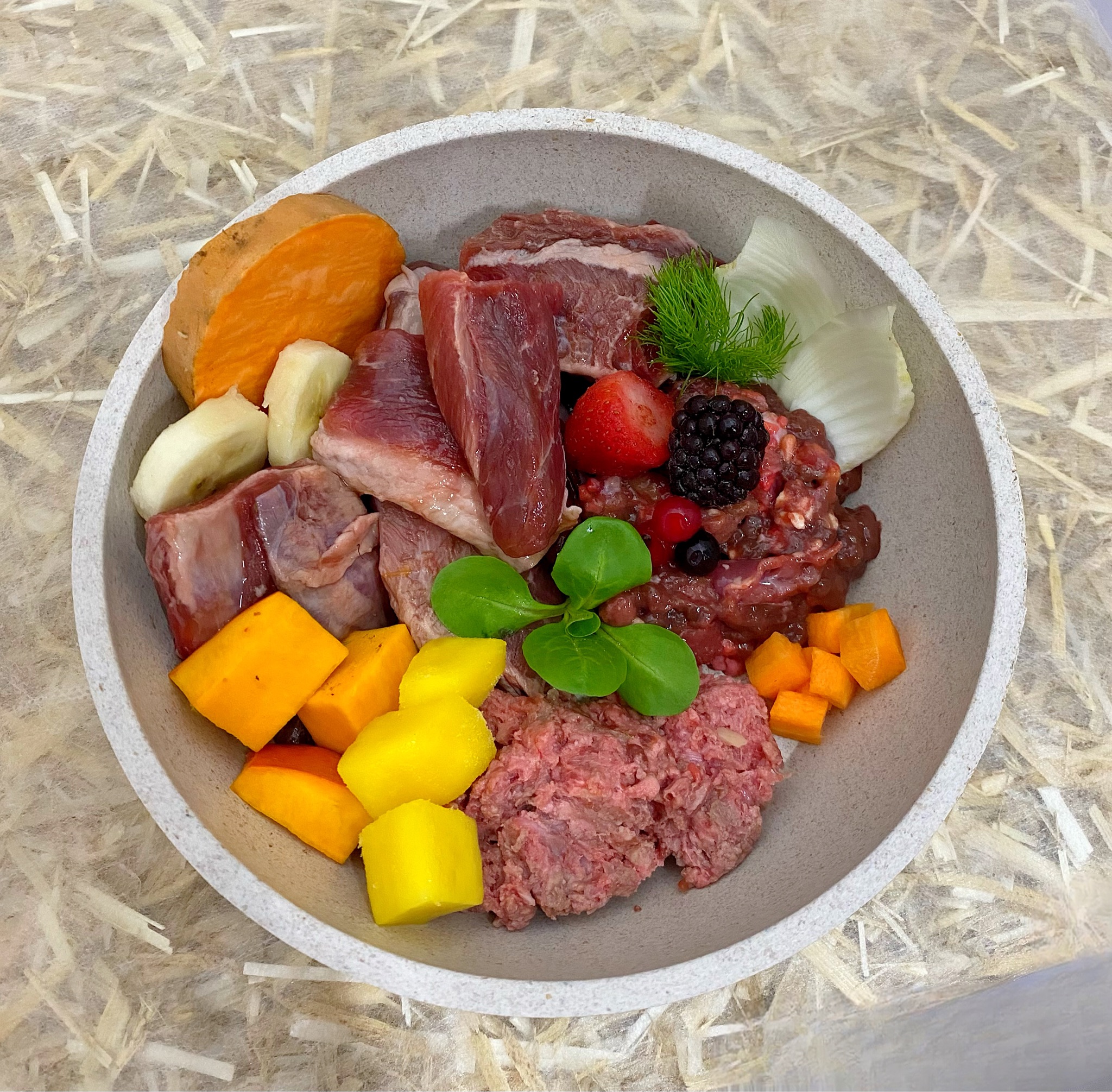 Klassik Menü – Lamm gewolft & Obst- & Gemüsemix ORANGE