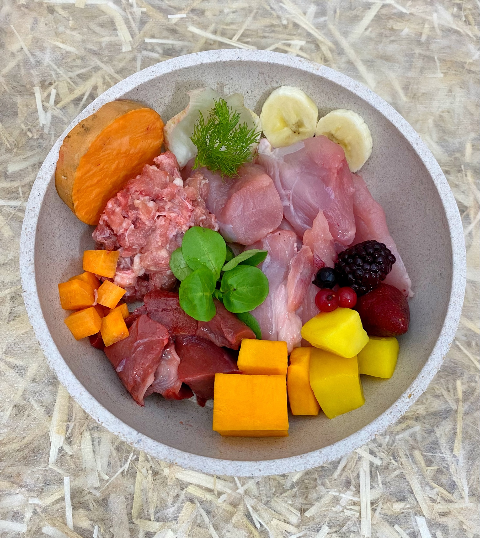 Klassik Menü – Pute gewolft & Obst- & Gemüsemix ORANGE „Disco Dave“