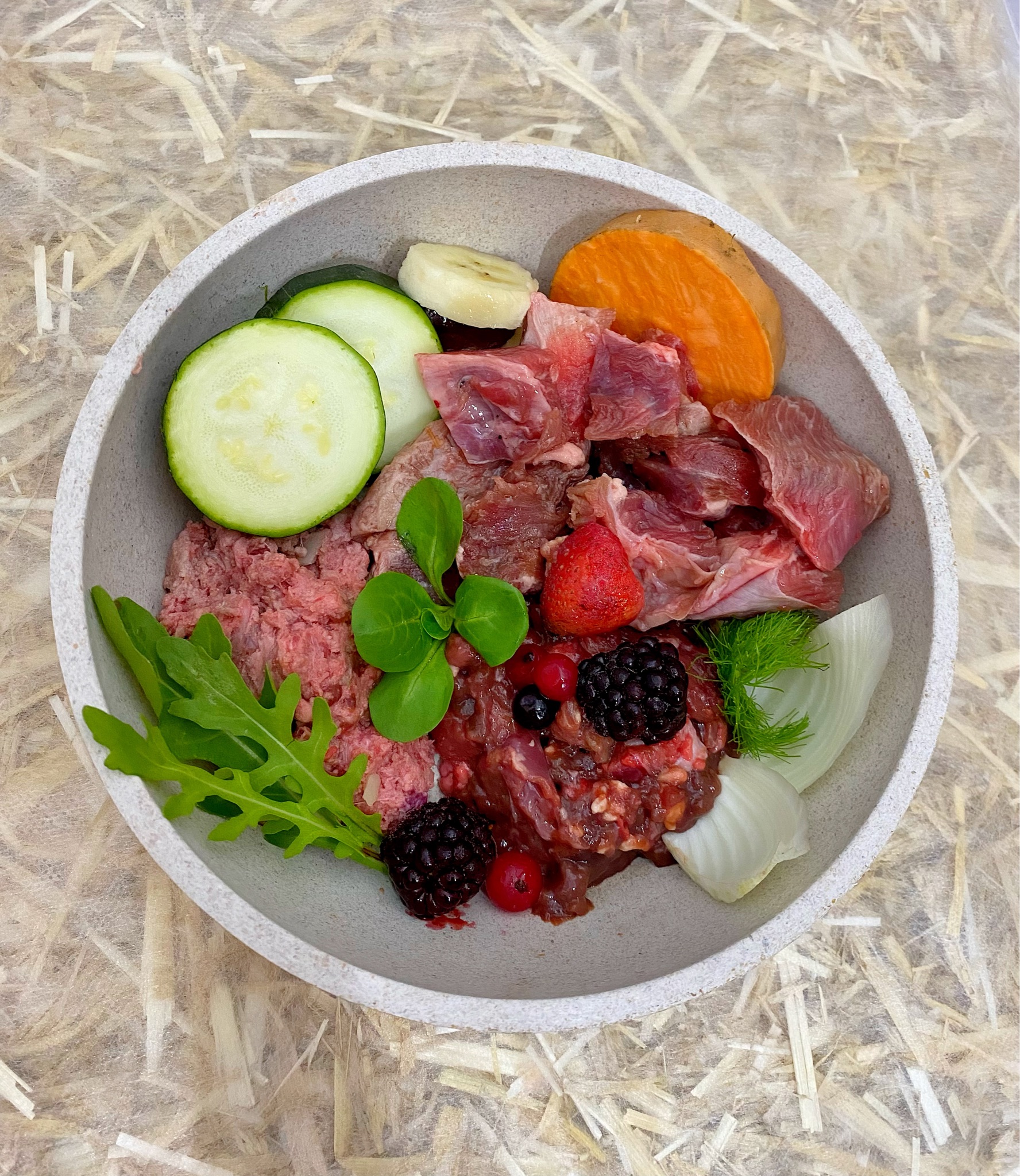 Lamm in kleinen Stücken & Obst- & Gemüsemix ROT