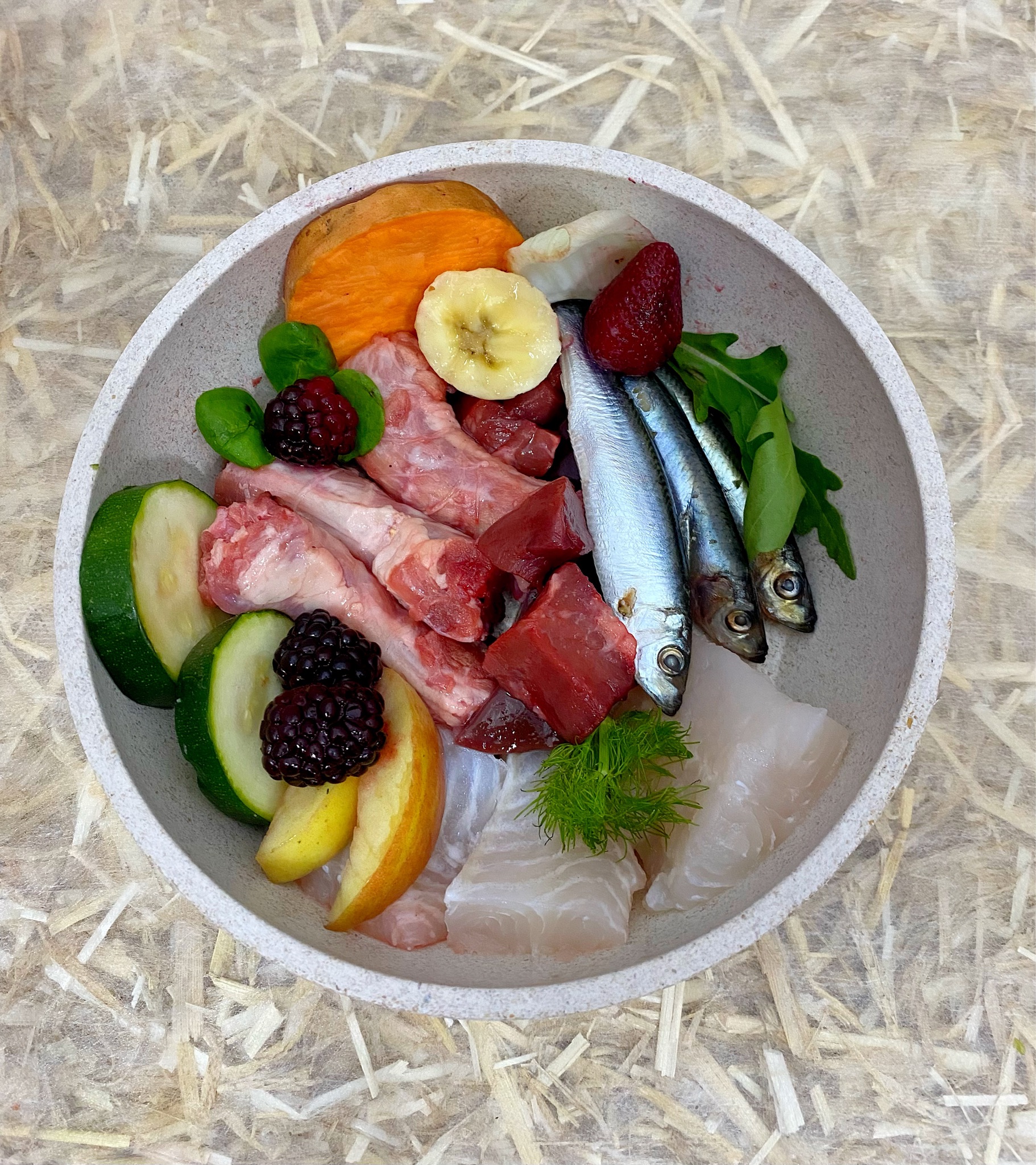 Fisch & Huhn gewolft & Obst- & Gemüsemix ROT „Testing“