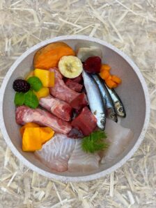 Fisch & Huhn gewolft & Obst- & Gemüsemix ROT „TEST HUND PREIS“