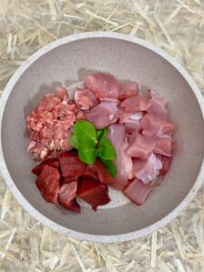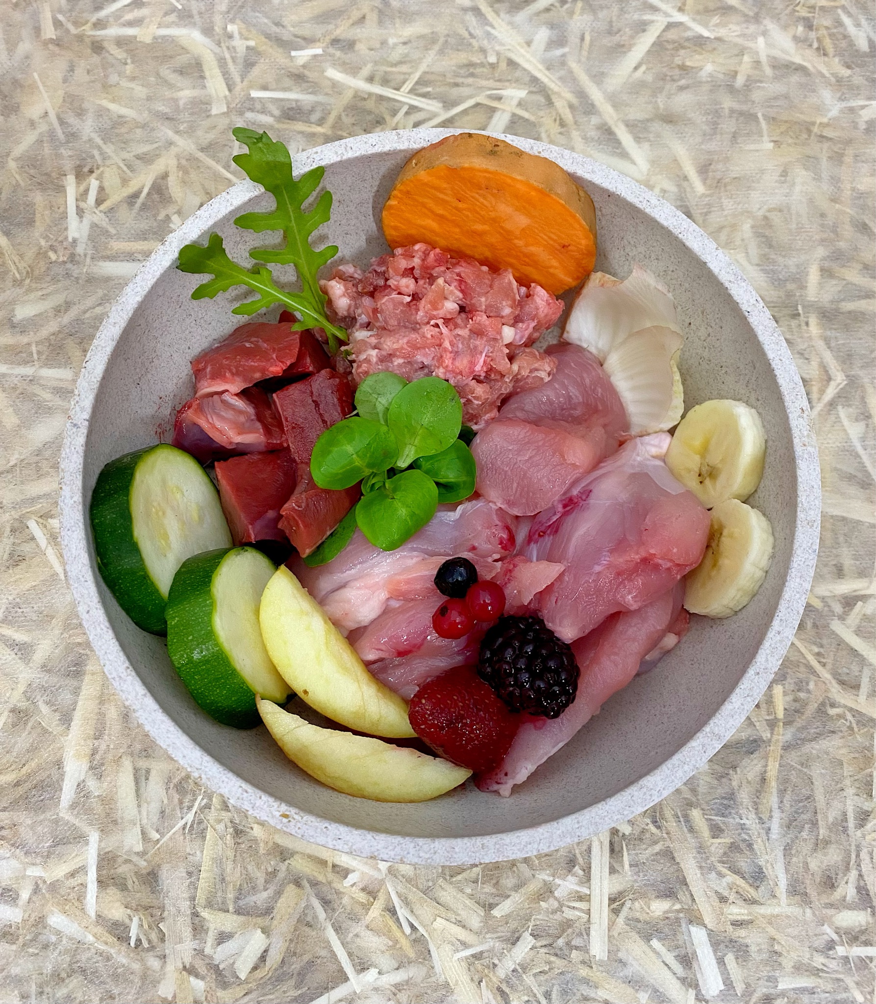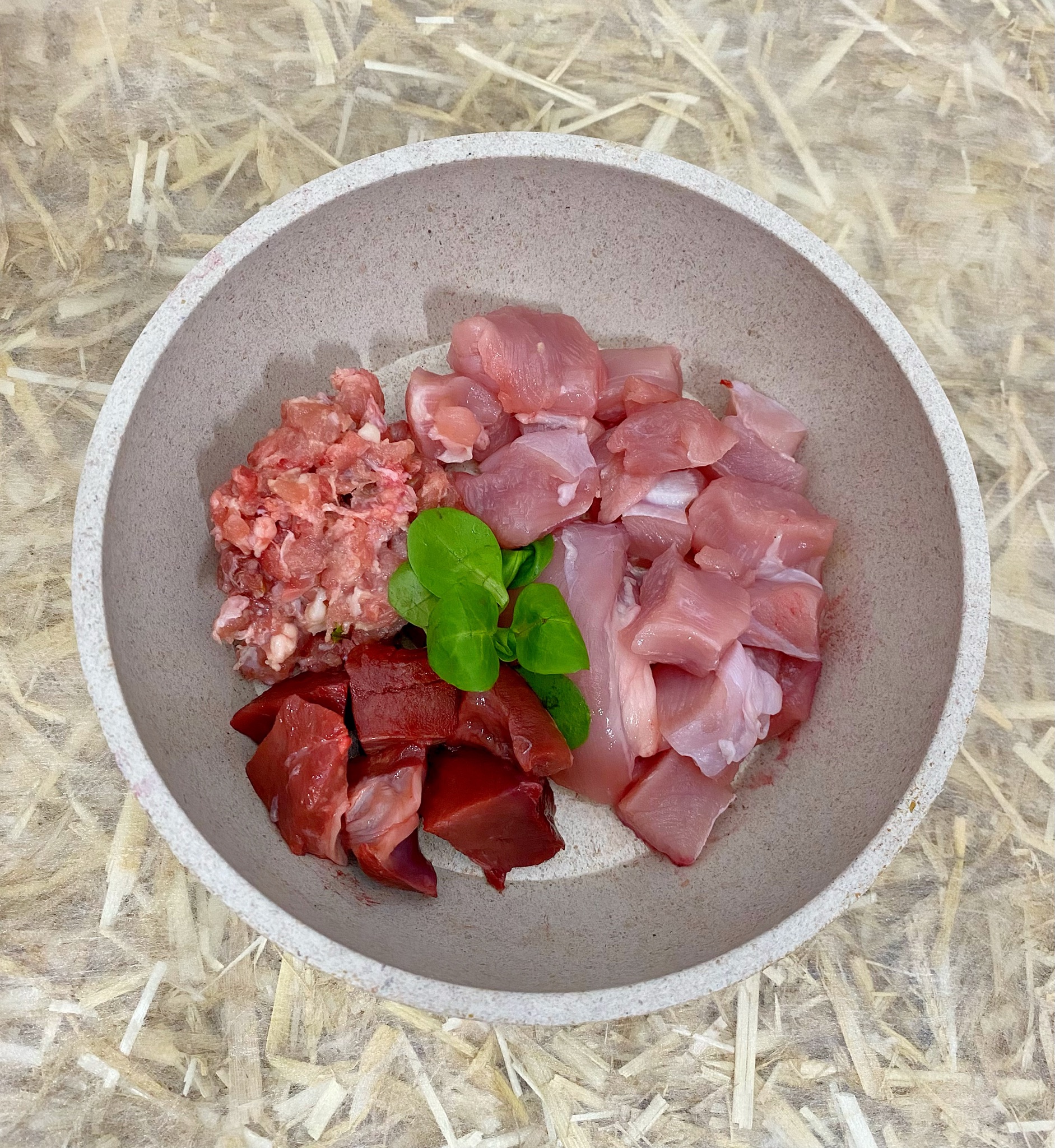 Pute in großen Stücken & Obst- & Gemüsemix ROT „TEST“