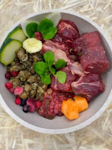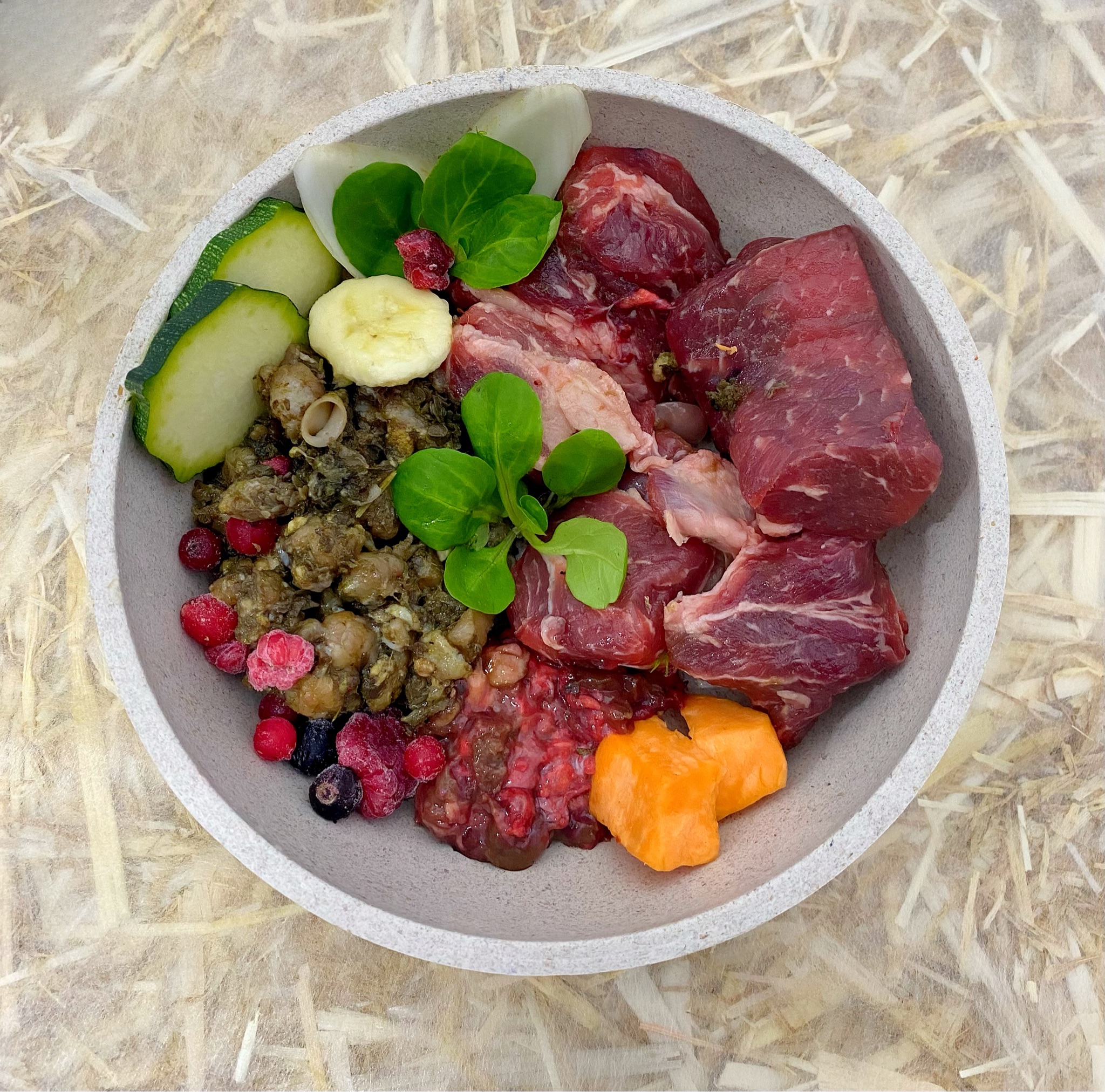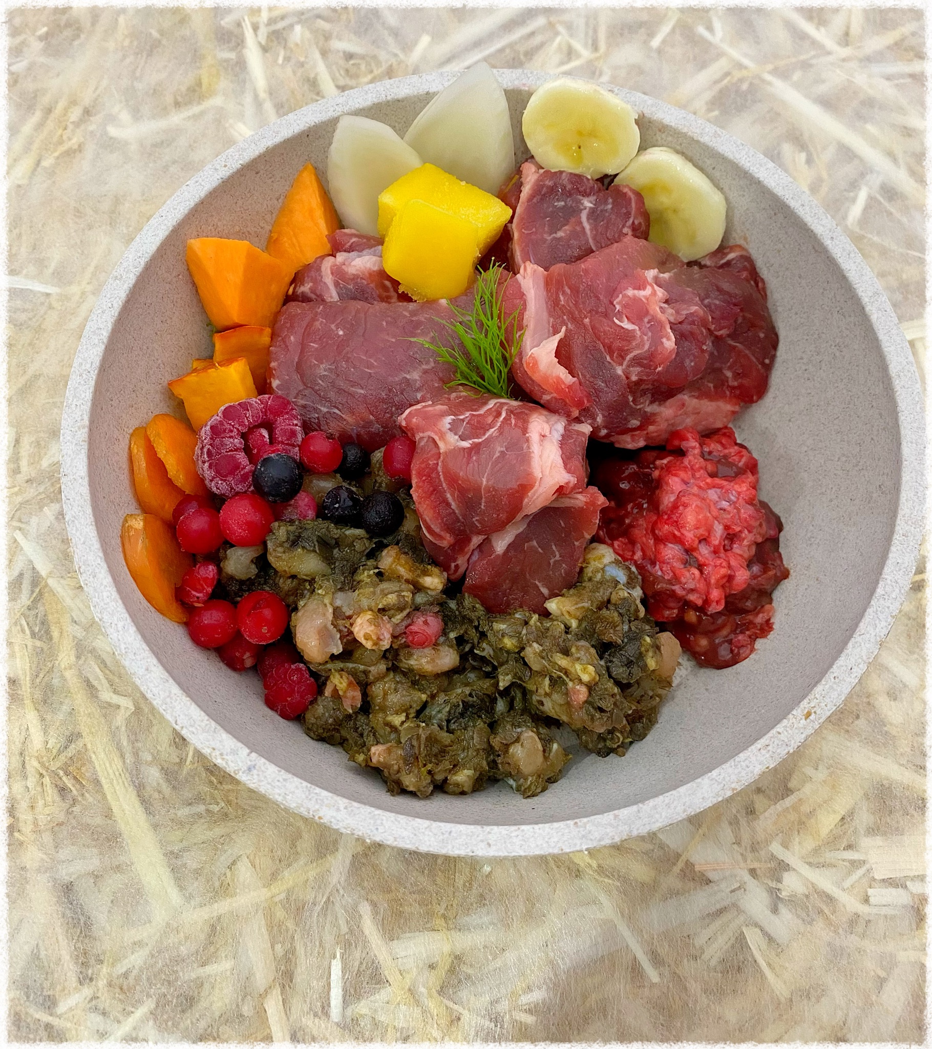 Rind & Pute in großen Stücken & Obst- & Gemüsemix ROT