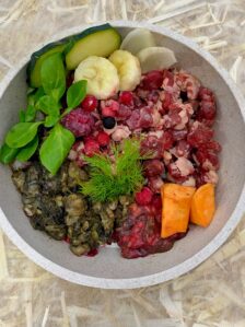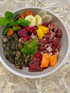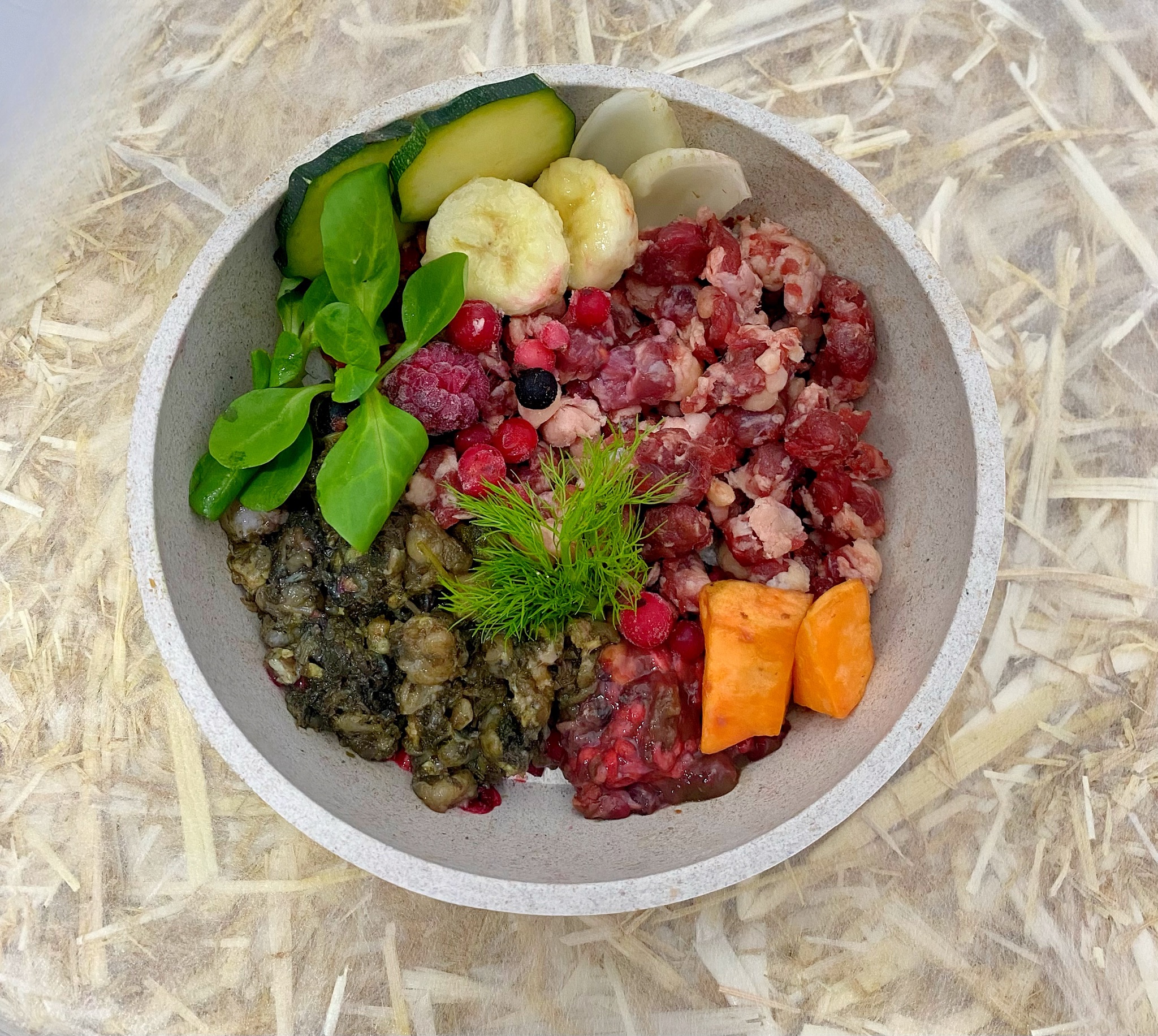 Rind & Pute in kleinen Stücken & Obst- & Gemüsemix ROT